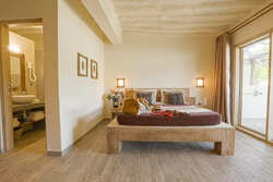 63 camere in stile etnico dotate di veranda, servizi privati con doccia, asciugacapelli, letto king size (2 x 1,95m), aria condizionata, ventilatore a pale, Tv, minifrigo e cassetta di sicurezza. Corrente a 230 volt con prese di tipo italiano.